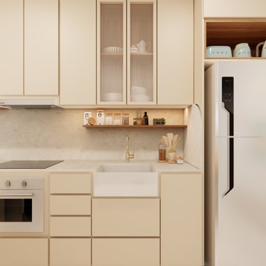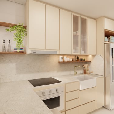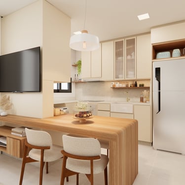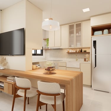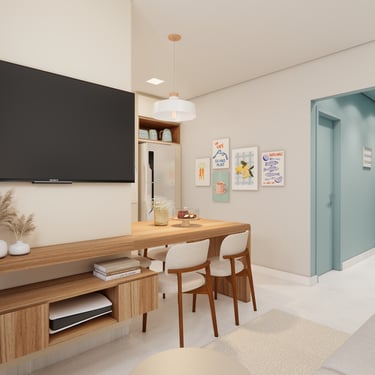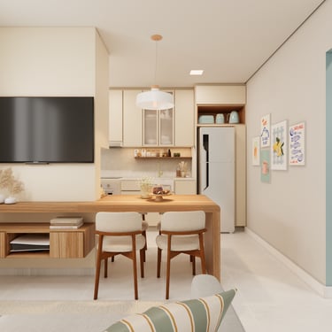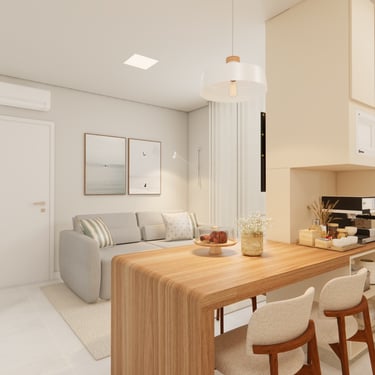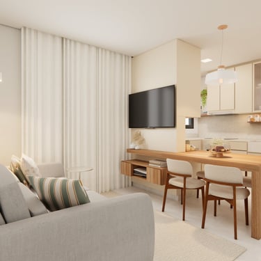 Localizado em Tijucas/SC, o projeto reflete a essência de quem ama a praia, valoriza a leveza do dia a dia e carrega muita personalidade. Um apartamento pensado para acolher, inspirar e viver com alma livre, do jeitinho deles.
