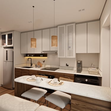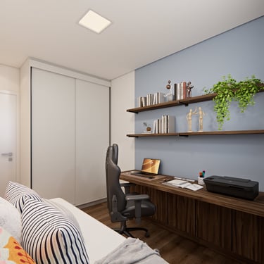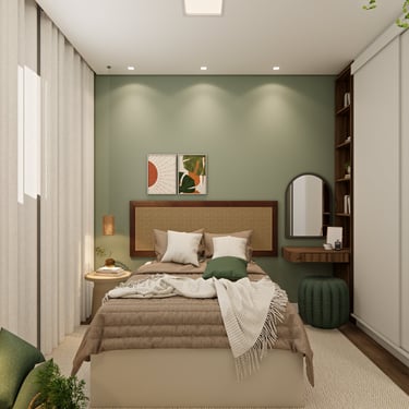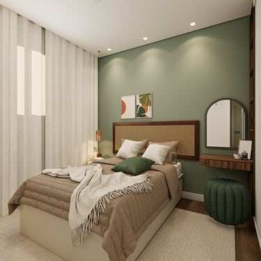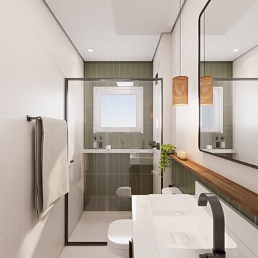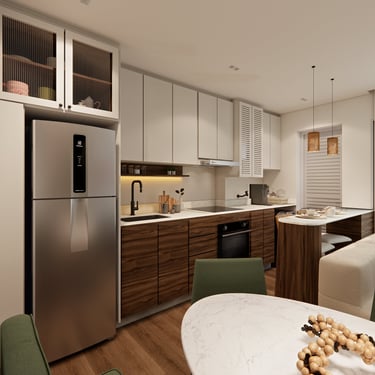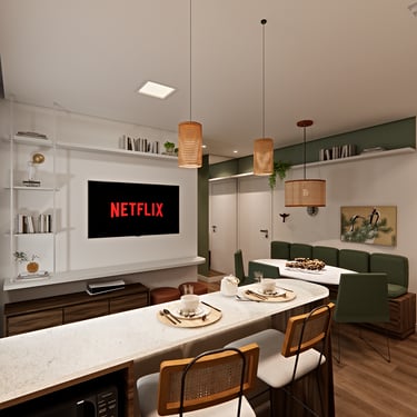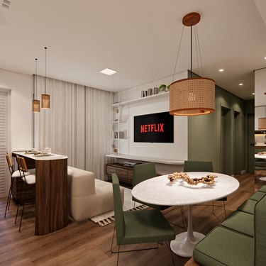 O apê Vitória, localizado em Hortolândia/SP, foi criado para refletir a essência de uma mulher super independente, determinada e que faz acontecer. O projeto traduz atitude e autenticidade, com uma paleta de cores fortes e escuras, equilibradas por tons de verde que trazem vida, presença e identidade aos ambientes.