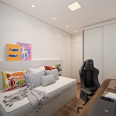 Cada detalhe reforça um morar cheio de personalidade, onde o espaço acompanha o ritmo, as conquistas e a liberdade de quem o habita.